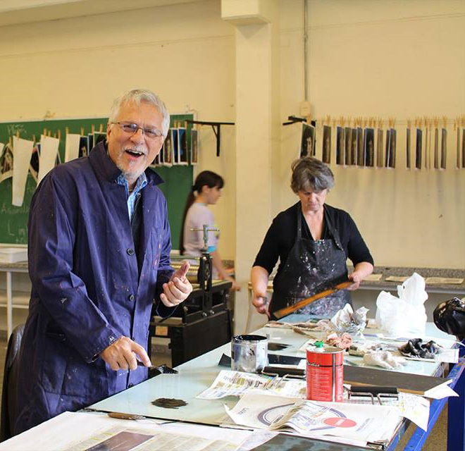 El proyecto “Muros”da continuidad al trabajo del primer taller de producción de las III Jornadas de Gráfica Contemporánea 2015, cuya temática fue “Migraciones”, y se focaliza en la discusión de problemáticas vinculadas a los procesos migratorios y los refugiados. El control de las propias fronteras y la búsqueda de seguridad interna han llevado a los estados a la construcción creciente de muros y alambrados para impedir la libre circulación de las personas.