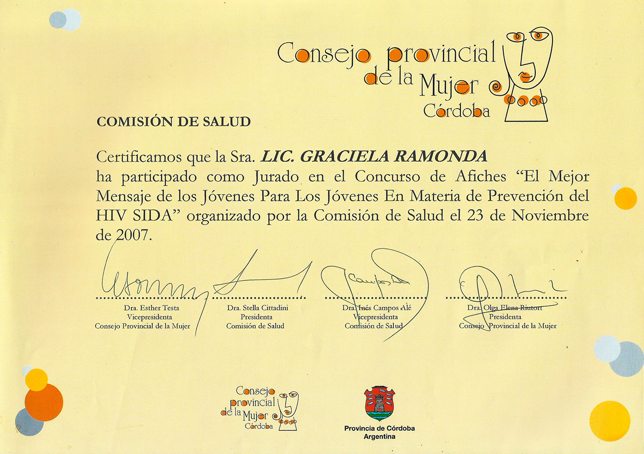Jurado en el Concurso de Afiches ”El mejor mensaje de los jóvenes para los jóvenes en materia de prevención del HIV SIDA”.